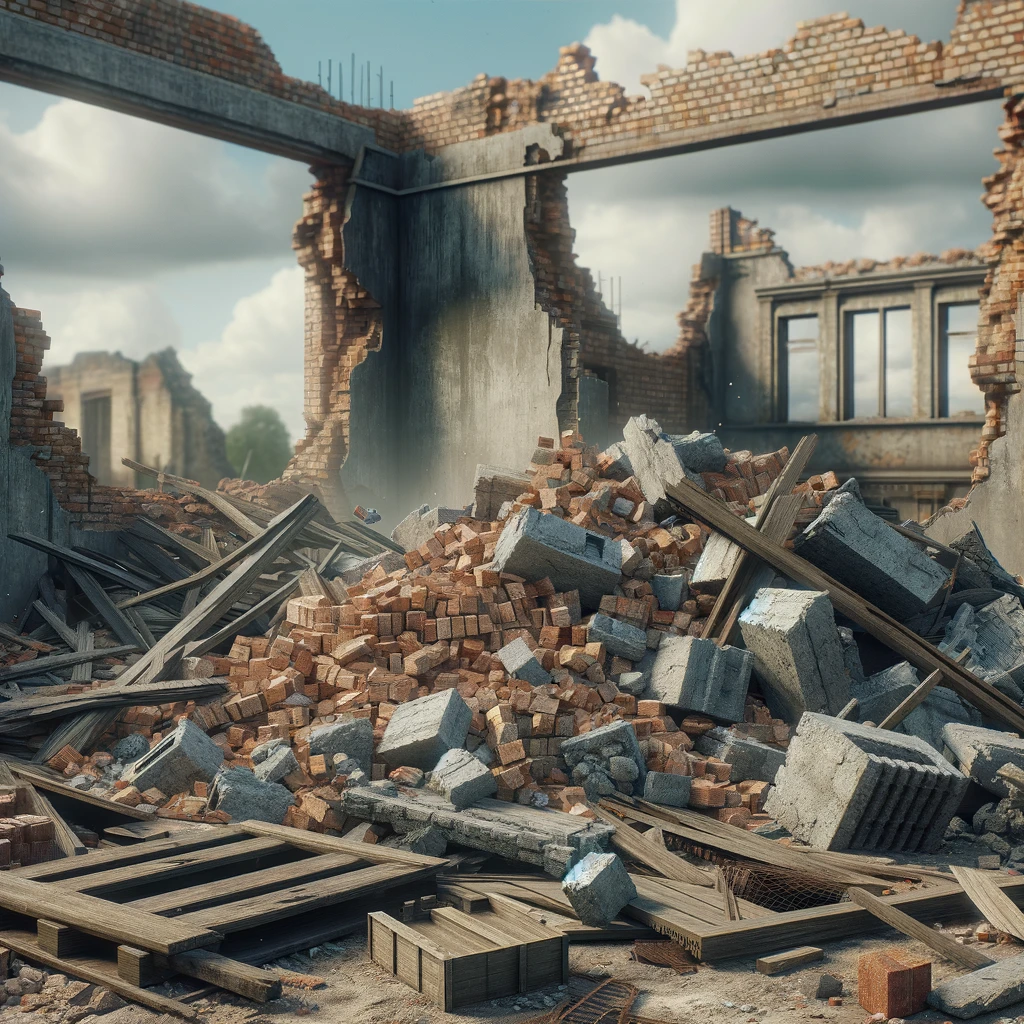 Gruz, cegły, płytki, beton, materiały izolacyjne, styropian, wełna mineralna, drewno, drzwi, ramy okienne, płoty, palety, tworzywa sztuczne, szkło.