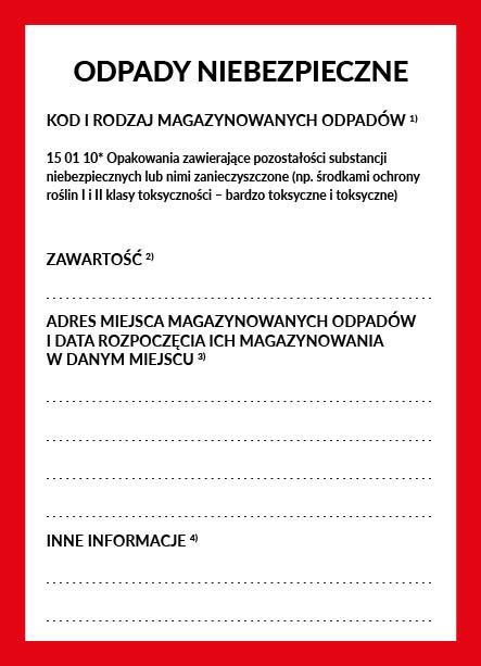 • Do naklejenia na worki, opakowania, pojemniki, kontenery, zbiorniki