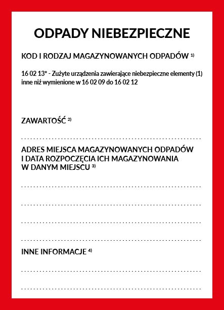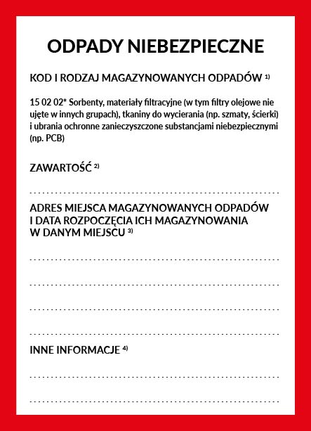 Możliwość zakupu etykiet z uzupełnionym kodem odpadu.